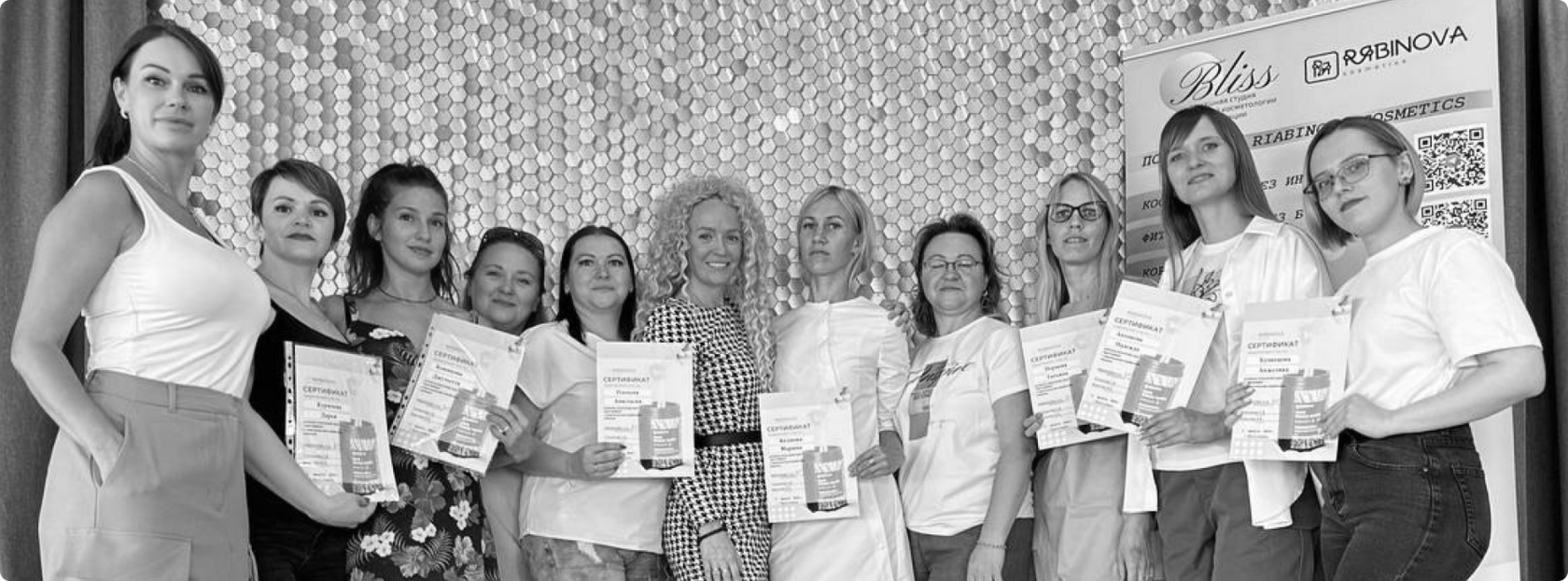 - Свидетельство: "Косметик-эстетист по уходу за лицом" и "Косметик-эстетист по уходу за телом".